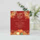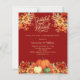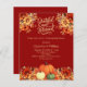 A terracotta coloured background. Decorated with pumpkins and orange and yellow flowers. Personalise and add the party details.