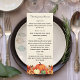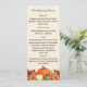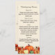 Cream coloured background decorated with orange fall flowers and pumpkins. Personalise and add your Thanksgiving menu on the front.