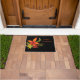 Doormat shown with a black background with a festive autumn fall leaves print.