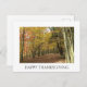 Happy Thanksgiving postcard, with a fall foliage woods photo and customisable typography. A special way to send festive wishes this autumn holiday season