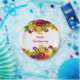 This design features gorgeous Autumn colours with orange fall leaves, golden, ruby red and green apples with berries and acorns. Edit the text in the text boxes to personalise. View the coordinating products in our store.