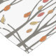 Personalise this modern graphic autumn fall leaves and trees pattern table cloth with your own family name, currently reads Happy Thanksgiving The Oakley family. Modern bare tree and falling leaves design in orange, golden yellow, grey and white. Fall graphic leaf art designed by Sarah Trett.