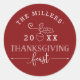Add a festive touch to your Thanksgiving dinner invitations and more with our deep garnet red stickers featuring your names, the year, and "Thanksgiving feast" in trendy block and script typography with an acorn illustration.