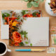 The vivid colours on this Thanksgiving floral envelope make it so eye catching. Orange roses, leaves, and ivy (with a light beige background) together make a beautiful frame for your return address, which is lined up neatly on the right side. Look for other products with these pretty florals in the Thanksgiving collection. Blessings!