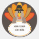 Sticker template to be customised with your own text, featuring a funny pilgrim hat turkey.