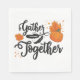 A festive script typography gather together saying paper napkin for your Thanksgiving dinner. Handwritten script with pumpkin and autumn leaves.