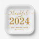 Stylish elegant custom thanksgiving party supply! Celebrate thanksgiving in style with this trendy party paper plates. Design features "thankful for 2024" in gold script typography on a clean white background. Personalise this product by adding name of family or your custom text. Easy to customise. Happy Thanksgiving!