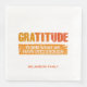 This eye-catching Thanksgiving paper napkin makes a bold statement with its vibrant orange hues, perfectly capturing the warmth and spirit of the season. Front and centre, the powerful message "GRATITUDE turns what we have into enough" is artfully displayed, serving as a poignant reminder to appreciate life's blessings. The striking design combines modern aesthetics with timeless wisdom, making it an ideal choice for those looking to express thankfulness in style during autumn gatherings or as a thoughtful gift for loved ones.