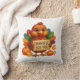 This holiday throw pillow is shown with a cute Turkey print.