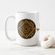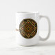 This elegant mandala features layers of Native American inspired patterns and more modern Thanksgiving icons, like turkeys, cornucopias, and leaves, in shades of orange, yellow, and red for autumn. This mug is available in a variety of sizes and styles, including travel mugs and steins.