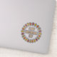 This awesome sticker features a digital art image of a series of Oak leaves in shades of red, orange, yellow and green arranged in a circle around some text with alternating letters of red, yellow, orange and green that says Happy Thanksgiving Day.