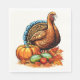 Party paper napkin is shown in the white luncheon size with a Thanksgiving turkey print.