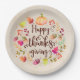 Happy Thanksgiving paper plates for Thanksgiving dinner with matching paper napkins.