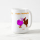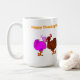 You can admire my adorable drawing of a pink turkey and a brown turkey, I call this drawing, "Thanksgiving Passion," with the text, "Happy Thanksgiving. Added onto this coffee mug, this coffee mug makes the perfect Thanksgiving gift.