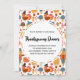 A Thanksgiving Dinner invitation with a seasonal fall pattern, Corn, mushrooms and flora. Along with turkeys and scarecrows to honour the Thanksgiving tradition.