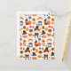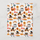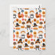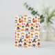Postcard with a seasonal Thanksgiving pattern. Featuring whimsical pilgrims, turkeys, pumpkin pie and other various autumn themed elements.