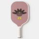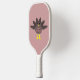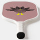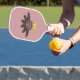 This awesome Pickleball Paddle features a cartoon of a turkey with big black eyes, a small yellow beak and tail feathers sticking up. The feet are facing in opposite directions making the turkey look goofy. The turkey has pink text on its’ belly that says “Happy Thanksgiving” and it looks like the feathers have been plucked out to reveal the message.