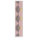 This awesome table runner features a cartoon of a turkey with big black eyes, a small yellow beak and tail feathers sticking up. The feet are facing in opposite directions making the turkey look goofy. The turkey has pink text on its’ belly that says “Happy Thanksgiving” and it looks like the feathers have been plucked out to reveal the message.
