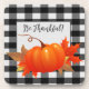 Thanksgiving Pumpkin Buffalo Plaid Plastic Coaster