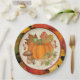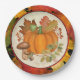 This is a Unique "One of a Kind" Thanksgiving Pumpkin Party Plate! It Features a Beautiful Orange Pumpkin Surrounded by Fall Leaves in Shades of Light Orange, Dark Orange, Green with Orange Berries and Brown Mushrooms!