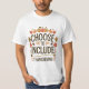 This Thanksgiving-themed t-shirt features the empowering phrase "Choose to Include" surrounded by warm autumn colours, pumpkins, and falling leaves. Perfect for holiday gatherings, this design emphasises unity, gratitude, and inclusion. Whether for Thanksgiving dinner or spreading positive vibes throughout the season, this tee is a heartwarming choice for those who value togetherness and celebration.