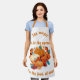 Our "Thanksgiving Pumpkins" apron is adorned with a beautiful drawing that features detailed pumpkins and flowers that evoke the magic of fall. But what really makes this apron special is the lovingly embroidered phrase: 'The magic is in the apron... and in the food, of course!' This fun and charming statement will remind you that cooking is a magical act in itself, where love and passion become delicious dishes. Give this apron as a gift with a touch of magic and style