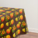 Thanksgiving Pumpkins & Fall Leaves on Brown Tablecloth
