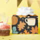 Thanksgiving retro style pumpkins maple leaves on dark background paper gift wrap.