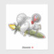 A fun and sweet Thanksgiving Vinyl Sticker where the Turkey has escaped from Thanksgiving and is travelling through the universe with the help of his rocket.