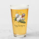 A Fun and sweet Thanksgiving Glass where the Turkey has escaped from Thanksgiving and is travelling through the universe with the help of his rocket.