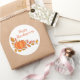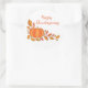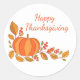 Large round sticker shown with a Thanksgiving pumpkin print.