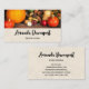Business cards with a photograph of a thanksgiving harvest, set on a rustic wooden table. Pumpkin, potatoes, squash etc... make up this bountiful collection of food.