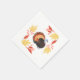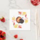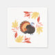A colourful turkey bird displays its plume. Leaves of lemon yellow, burnt sienna and coral adorn the scene.