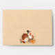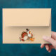 Enhance your autumn celebrations with our delightful envelope design, featuring Tom Turkey as the centerpiece! Adorned with playful Pilgrim hats, Tom is surrounded by beautifully detailed pumpkins, vibrant autumn leaves, and floral accents. Rich, earthy tones of orange, brown, and red create a warm, inviting ambiance, while delicate swirling vines and soft green foliage add a whimsical charm.