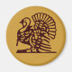 A brown turkey on a spice coloured background to herald a Happy Thanksgiving.