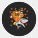 Thanksgiving Turkey Riding Shark Funny Autumn Boys Classic Round Sticker