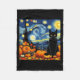 Thanksgiving Van Gogh Starry Night Black Cat Pumpk Fleece Blanket