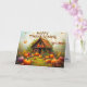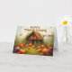 Celebrate Thanksgiving with this imaginative and festive greeting card. The artwork is painted in an impressionist oil style, depicting a whimsical little house built entirely from fruits and vegetables—pumpkins, eggplants, cucumbers, tomatoes, corn, apples, pears, peaches, cherries, and fresh greens—nestled among grass and flowers. The vivid colours, crisp detail, and painterly textures bring the scene to life. Across the sky, bold calligraphy spells out “HAPPY THANKSGIVING,” making this card perfect for sending warm holiday wishes. A delightful choice for friends, family, or anyone who appreciates creative and joyful holiday art.