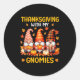 Thanksgiving With My Gnomies Funny Autumn Fall Gno Classic Round Sticker