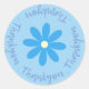A thankyou sticker with a blue flower to use on gifts, envelopes or handmade gifts.