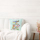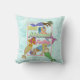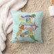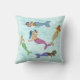 A dreamy pillow design in bright, cheerful colours, with five different mermaids lounging and relaxing as they hang out by the water.