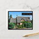 Postcard of a thatched roof cottage in typical Cotswolds architecture with beautiful garden in Chipping Campden, England, UK with a black frame and the text: 'Cotswolds'.