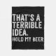 That's A Terrible Idea Hold My Beer Funny Drinking Fleece Blanket