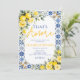 An elegant That’s Amore bridal shower invitation featuring a fresh watercolor lemon and yellow floral design framed with a classic blue Italian tile pattern. Inspired by Italian-themed bridal showers, this invitation combines bright citrus elements with soft yellow florals and timeless Mediterranean tile details for a romantic and stylish look.