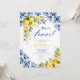 The back of the invitation continues the blue tile and watercolor lemon floral design, creating a cohesive and polished stationery set. Easily personalize with your event details to create a memorable and beautifully styled bridal shower invitation.