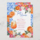 Toast to love and happiness with this Love at First Spritz Floral love at first spritz Bridal Shower Invitation! Featuring vibrant orange florals, citrus accents, and elegant typography, this design captures the lively spirit of an Aperol Spritz-inspired celebration. Perfect for a prosecco or cocktail-themed bridal shower with a blue mediterranean tiles, this invitation sets the tone for a fun and sophisticated italian theme gathering. Fully customizable with your event details, it’s the ideal way to invite guests to join in the bubbly festivities.
