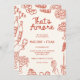 The invitation features a quirky handwritten font, adding a personal and playful touch that invites your guests to partake in the celebration. Surrounding the edges are red hand-drawn illustrations of iconic Italian foods — think delicious pizzas, creamy pastas, and fresh lemons — capturing the heart of Italy's culinary delights and creating a festive atmosphere.