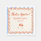 That's Amore! Trendy whimsical hand drawn wedding napkins. Easy to personalise names, date and year. Watercolor blue stripes with orange red border with typography in a hand drawn style with toasting wine glasses.