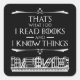 That's What I Do - I Read Books And I Know Things. Funny book-themed accessory is a great book lover gift for someone who loves books, reading, libraries, bookshops and bookstores. Perfect for a librarian, book nerd or bibliophile. Are you a bookworm? Do you love to read literature and novels in a library or a used bookstore? Are you an insatiable reader? If you're a geek about books, this funny quote book lover design is for you!