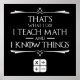 That’s What I Do, I Teach Math And I Know Things. This funny quote math lover accessory would make a great gift for a math teacher or math geek. Wear this to your next math class and make your friends & students laugh! Are you a high school, middle school or elementary school mathematics teacher? Do you love maths and explaining math problems and equations to your class? Then this math design is for you! Includes plus, minus, multiplication & division symbols.